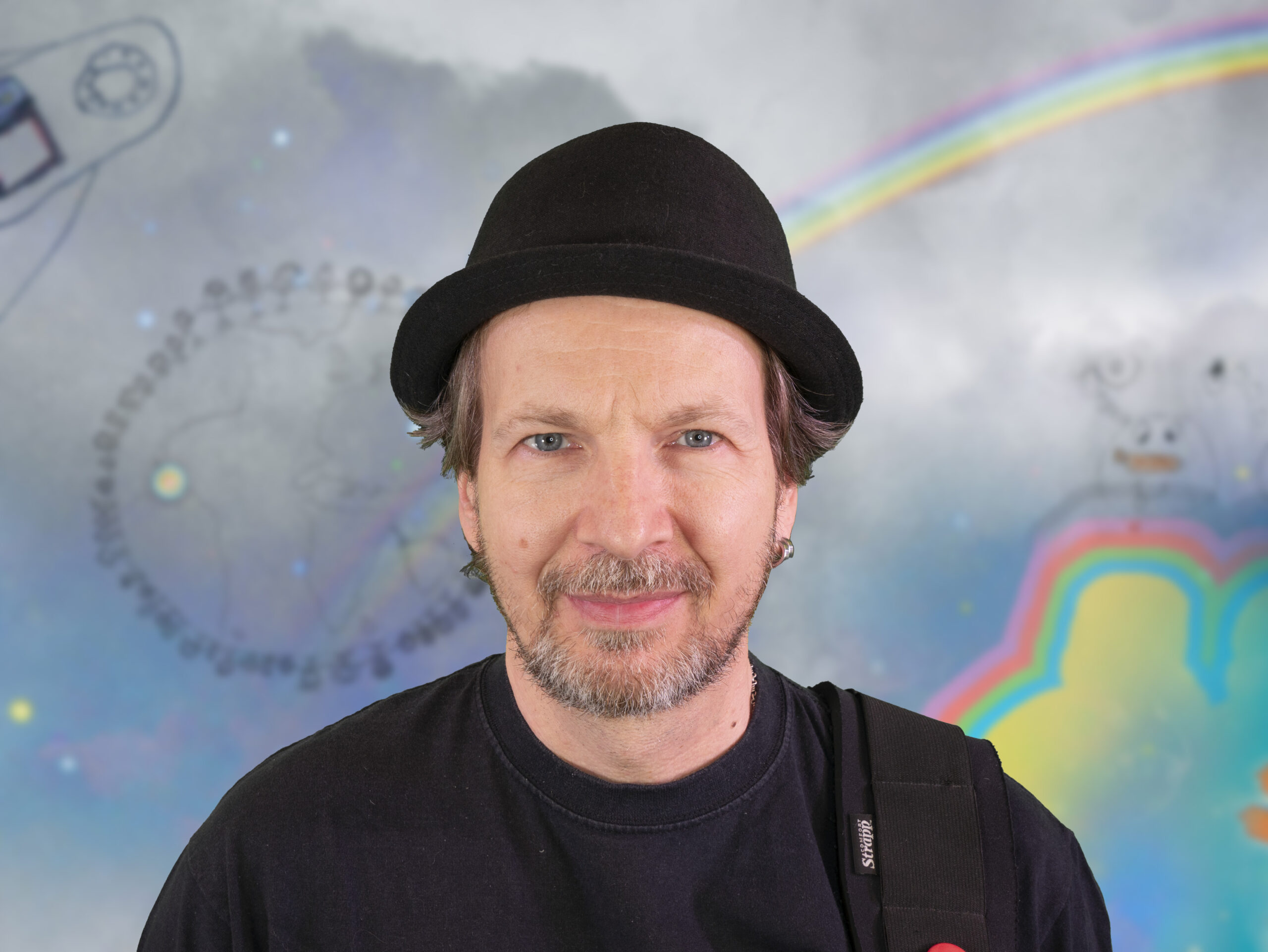 Komponist und Texter der Lieder. Übt mit Kindern Lieder ein und bestärkt die Kinder in ihrer Bühnenpräsenz. Moderator und Sänger der Band.