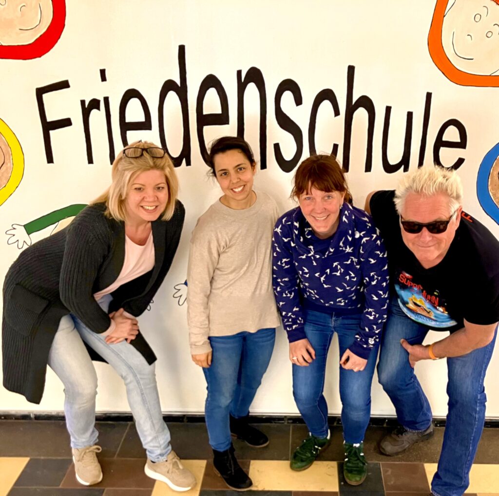 Am Donnerstag, den 6. März 2025 besuchte Suppi Huhn zum ersten Mal die Friedensschule, um das Projekt mit der Schulleitung Katja Dzilak, Rehana Faiz-Din und der Klassenlehrerin Nadine Breidenbend zu besprechen.